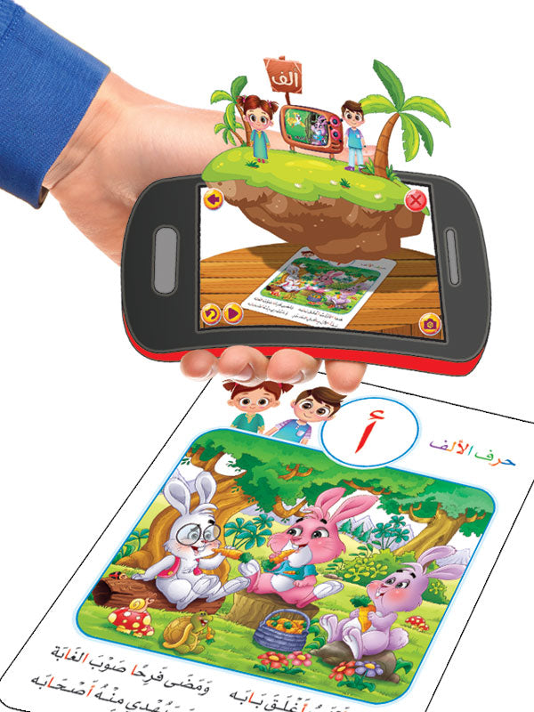 الكتاب : هو خطوة في بداية طريق تعلّم اللغة العربيّة، ويتعرّف الطفل من خلاله على كيفيّة قراءة وكتابة الحروف العربيّة حسب موقعها في الكلمة، واعتُمد في هذا الكتاب ممارسة مهارة التلوين والكتابة فوق الحروف المنقّطة لتساعد الطفل على كتابتها بسهولة وتجعله قادرًا على التحكم بعضلات وحركة أصابعه عند الكتابة والتلوين، كما يتعرّف الطفل على شكل الحرف عندما يكون في أول الكلمة و وسط الكلمة وآخر الكلمة مع أمثلة للكلمات المعززة بالصور.