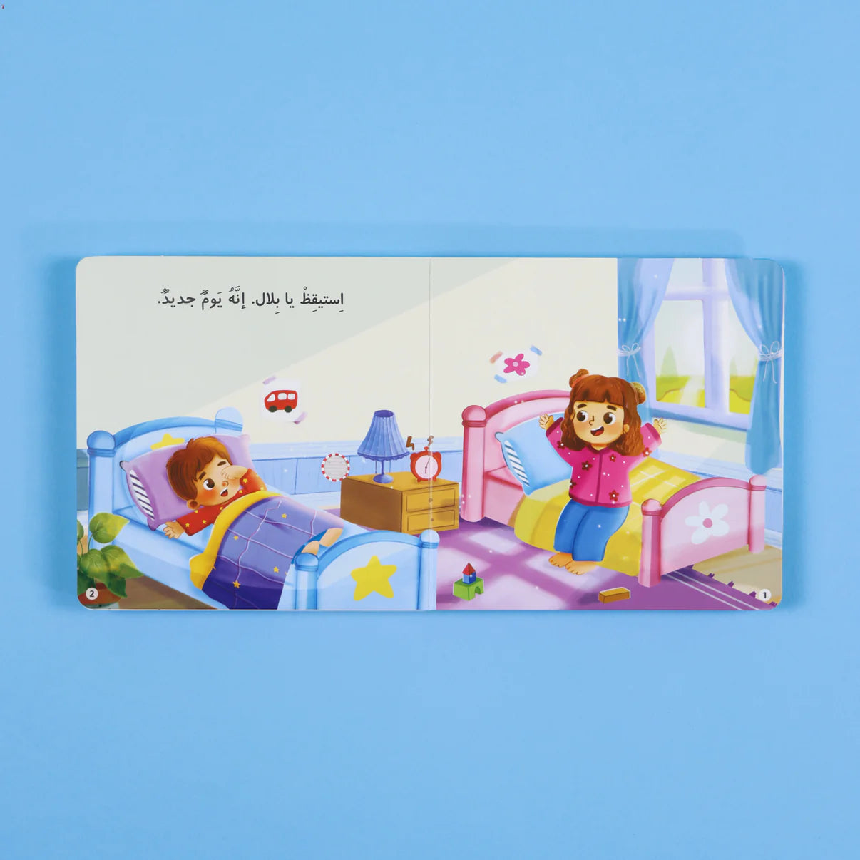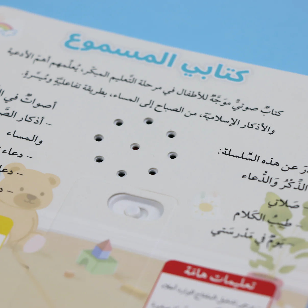 كتاب صوتي موجه للأطفال في مرحلة التعليم المبكر، يُعلمهم أهم الأدعية والأذكار الإسلامية، من الصباح إلى المساء، بطريقة تفاعلية وميسرة