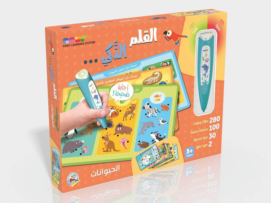 القلمُ الذَّكيُّ يجعلُ عمليَّةَ التَّعلُّمِ مُمتعةً! اخترْ بطاقةً وابحثْ عنْ إجابةِ السُّؤالِ في الصُّورةِ. اضغطِ العلاماتِ الخاصَّةَ بالقلمِ الذَّكيِّ على البطاقةِ، وسوفَ يُشيرُ إذا كانتِ الإجابةُ صحيحةً أمْ خاطئةً